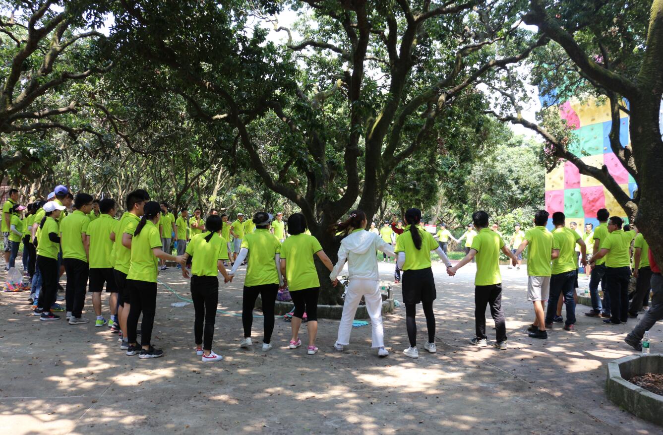 ? ? 活動開展過程中,大家在培訓師的帶領下被分成6個小組,各組隊員激情澎湃,嚴陣以待,拓展訓練拉開了序幕。 在拓展訓練項目中,一個個精心設計的比賽項目激發了大家濃厚的參與興趣與熱情。面對著各種挑戰,各隊隊員集思廣益,迎難而上,同心協力,隊員之間相互鼓勵,不逃避不放棄,所有團隊均圓滿完成了各拓展項目培訓。