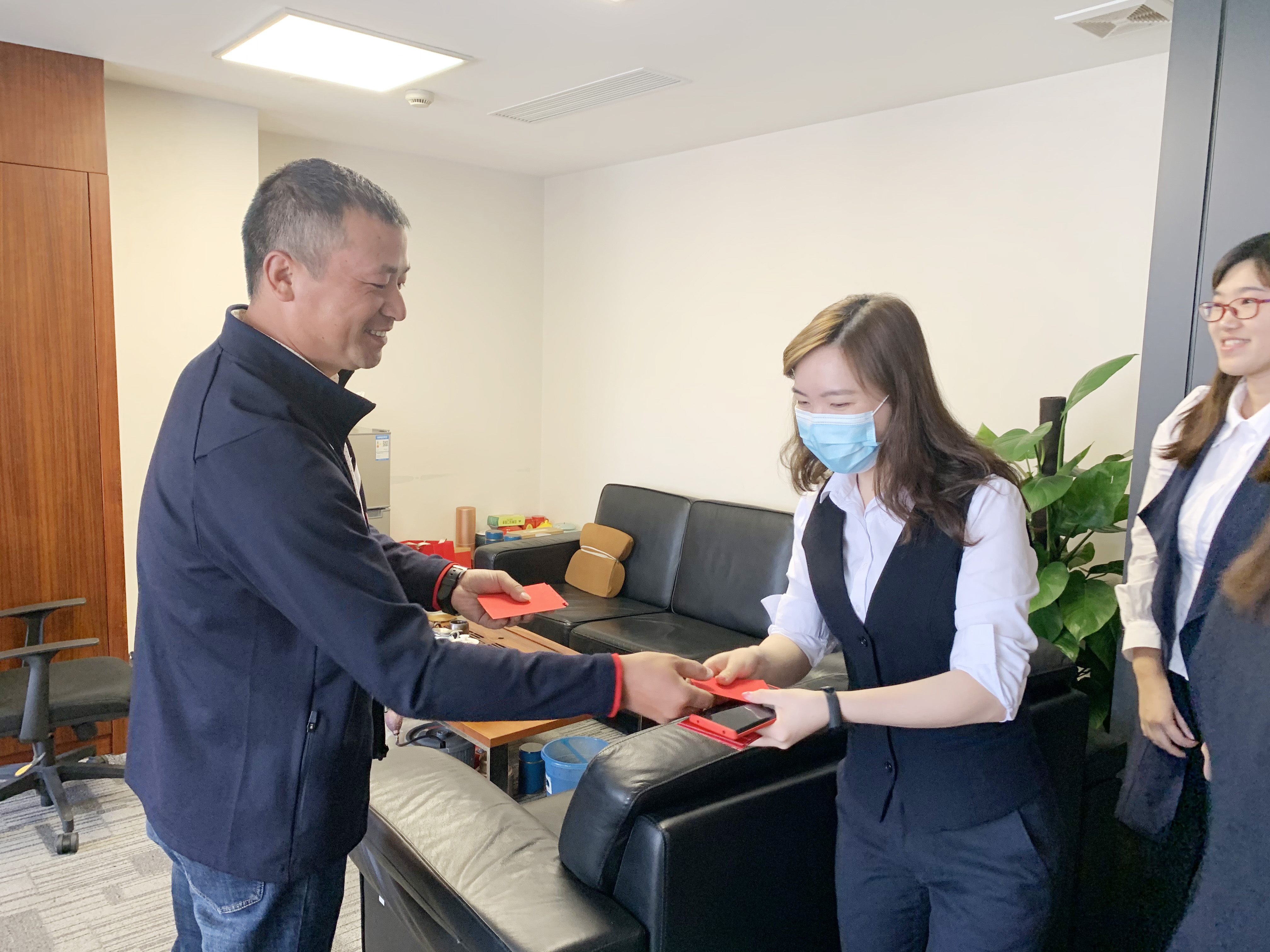 ? ??新春開工第一天,按照中航每年的傳統,董事長石英都會親手給員工送上寓意新年事業興旺的“開門紅包”,并送上新春的問候和祝福,勉勵大家新的一年里鼓足干勁,在新的起點上奮發有為,開拓創新,犇向新佳績!