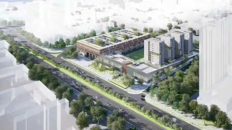 深圳市第十七高中建設工程位于坂田街道金園片區,五和大道與風門路交匯處西南側。總用地面積約70342平方米,總建筑面積131172平方米,建設班額96班,提供學位4620個,總投資約96255萬元。該工程建設內容包括教學用房、教輔用房、教職工宿舍、地下停車庫、立體運動空間,設地下停車位329個。