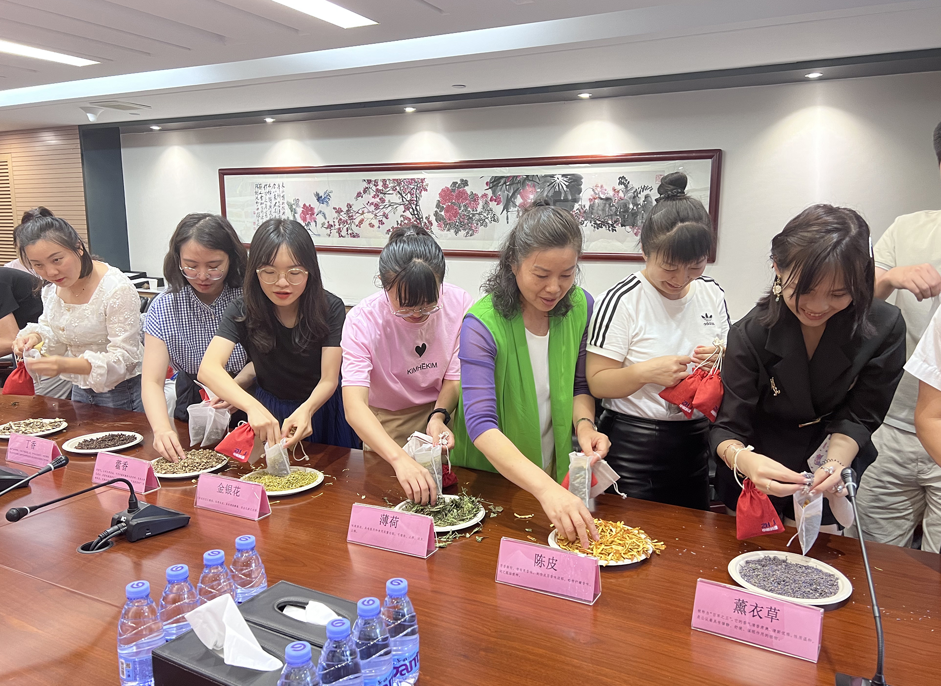 ? ? ? ?活動伊始,人事部同事向大家介紹各種香料的名稱和功效。佩戴香囊是端午節(jié)的習俗之一,有驅邪避瘟之意。本次活動特選取藿香、艾葉、陳皮等多味中藥作為香囊原料,既能提神醒腦、趨避蚊蟲,也能起到芳香避疫的效果。