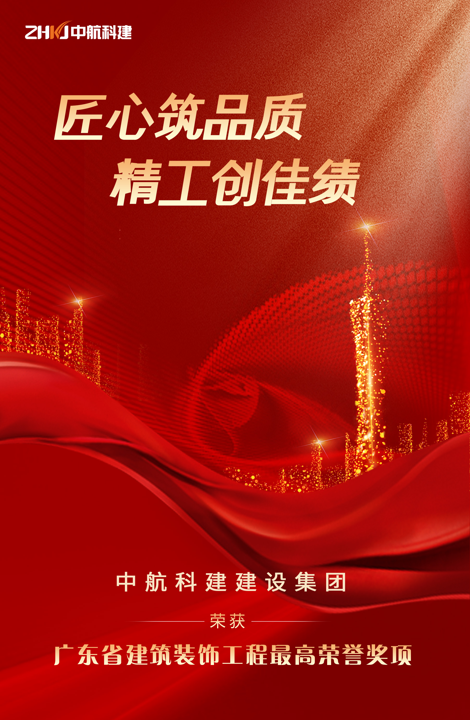 此次所獲的廣東省優秀建筑裝飾工程獎是廣東省建筑裝飾行業評價工程質量的最高榮譽獎項。該獎項是對施工單位在項目建設過程中所付出的努力和精益求精的完美體現,充分展現了我司良好的技術創新能力與優秀的工程建造水平,也彰顯了中航科建在工程質量管理方面的硬核實力與專業水準。