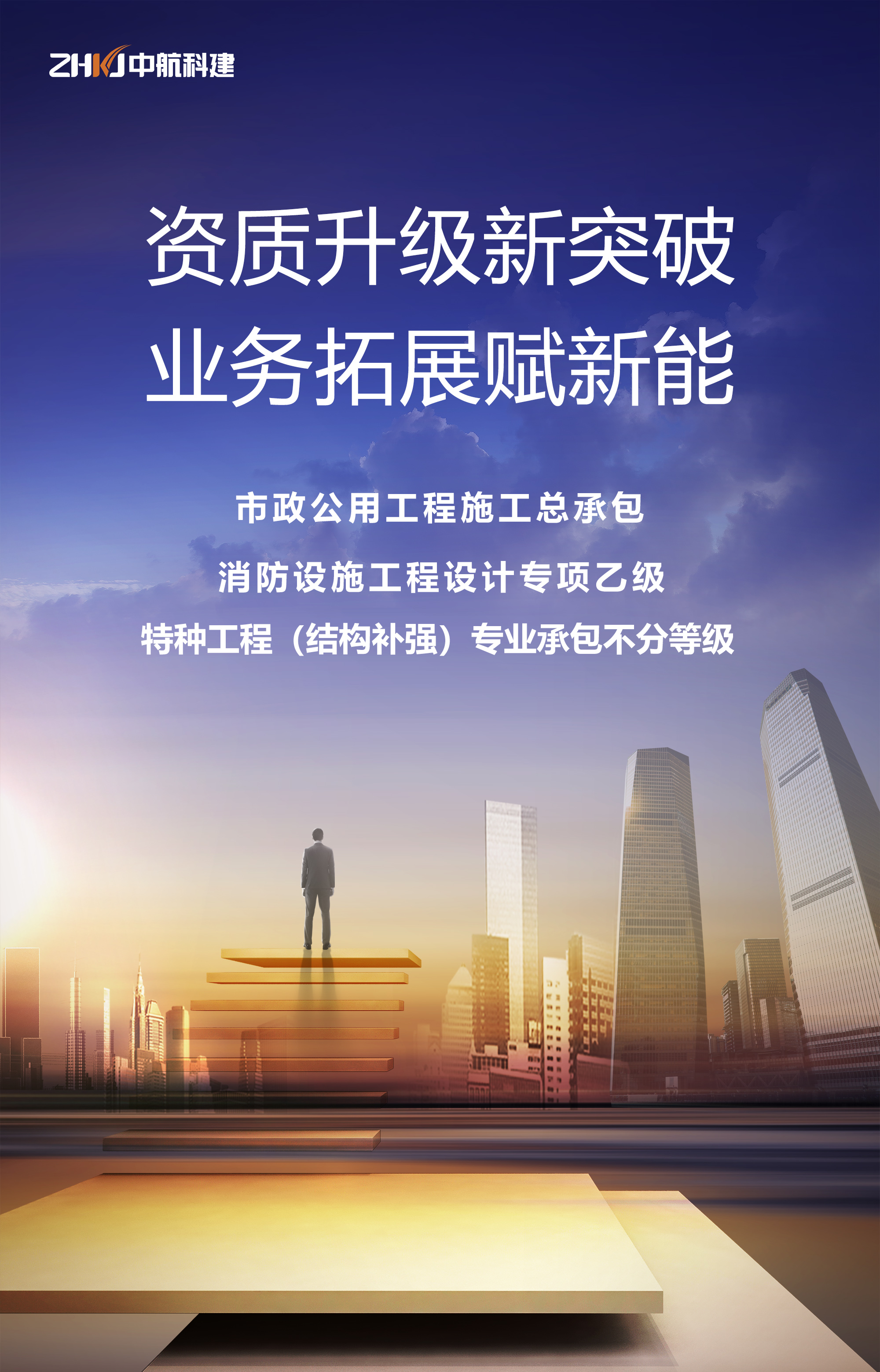 ? ? ?近期,中航科建建設集團資質建設工作再傳捷報!成功新增市政公用工程施工總承包資質、特種工程(結構補強)專業承包不分等級資質、消防設施工程設計專項乙級三項資質。