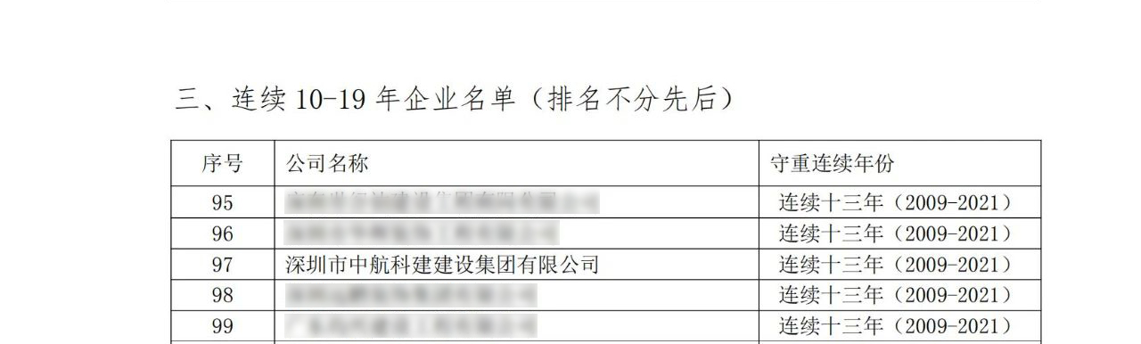 信譽長青∣中航科建連續十三年上榜廣東省“守合同重信用”企業