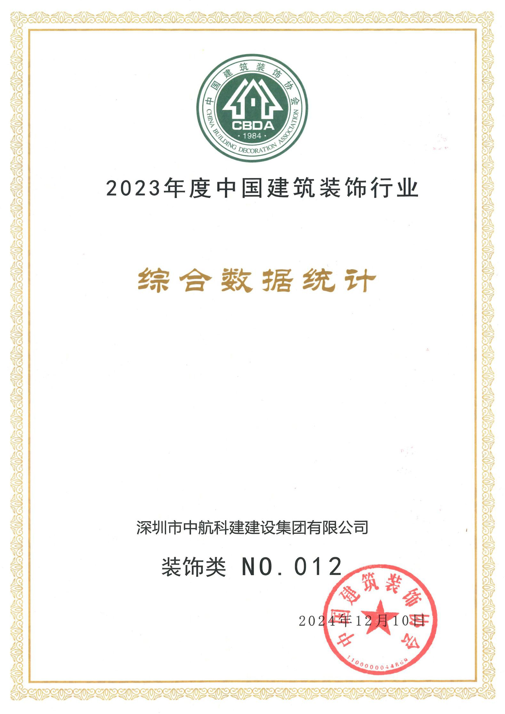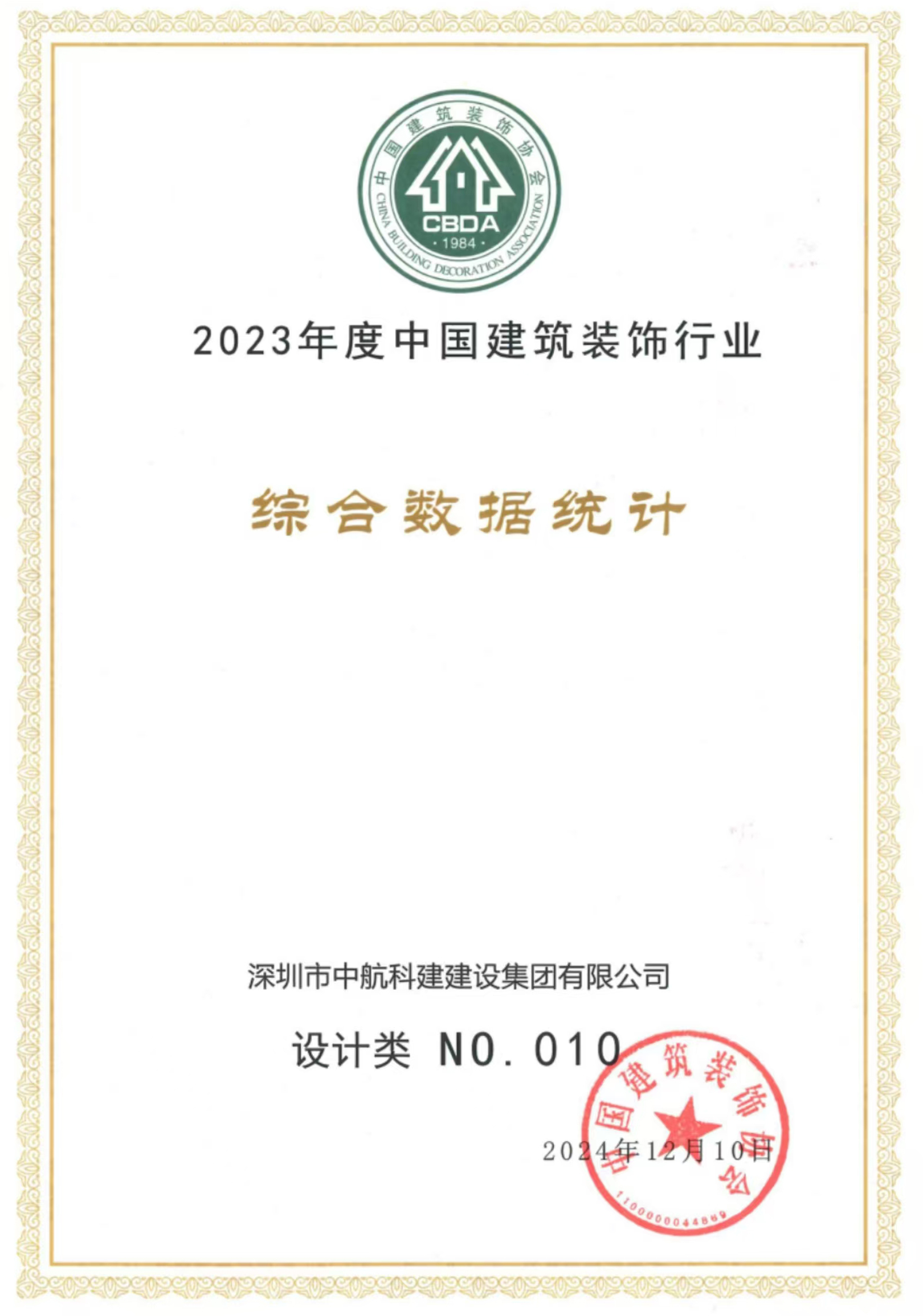 中航科建位居2023年度中國建筑裝飾行業百強前列