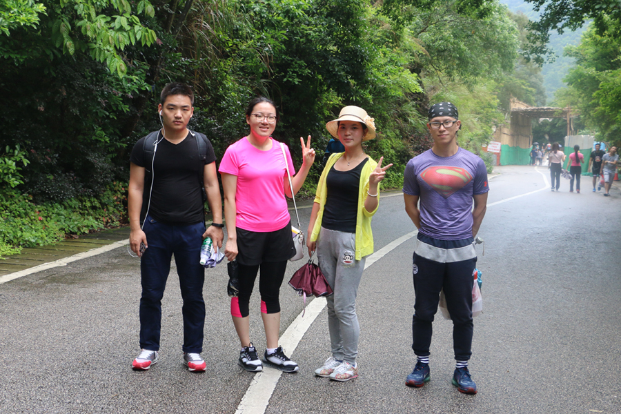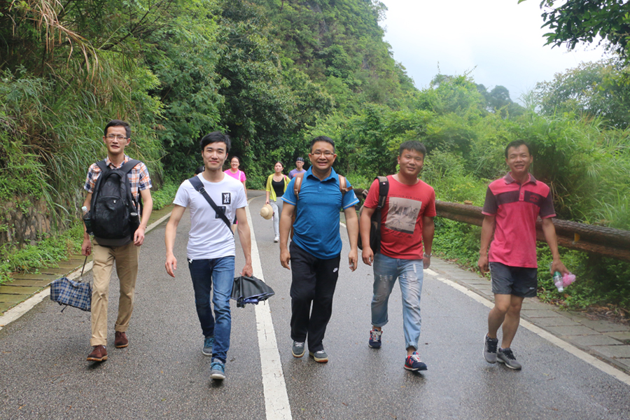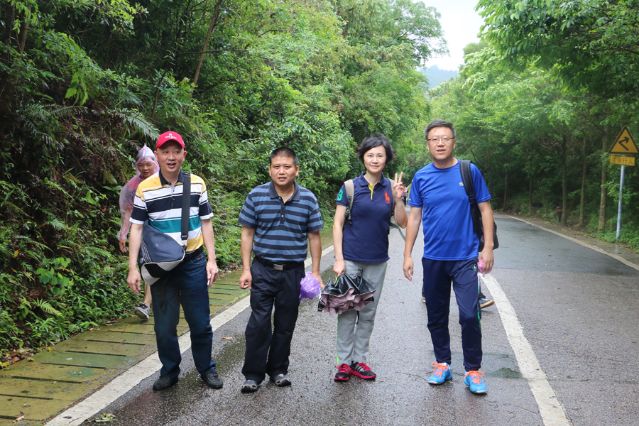 首夏猶清和,芳草亦未歇。深圳的五月,陽光正好,微風不燥。中航裝飾集團的小伙伴們就在這惠風和暢的天氣里向深圳最高峰——梧桐山發(fā)起了挑戰(zhàn)。雖然上午剛到山底就飄了點小雨,但大家登山的熱情不減,情緒高昂。石英董事長更是一馬當先,帶領大家沿著逶迤盤旋的山路,穿過蔭翳的林木,向山頂一路攀登。雖然道路曲折漫長,但是沿途風景優(yōu)美,為增加本次活動的趣味性與挑戰(zhàn)性,我們更是事先在沿途放置了一些卡紙,在活動中增加了“尋寶”游戲,讓大家在爬山的過程中,體會尋寶的樂趣。大家樂此不彼,在不斷尋找的過程中似乎也忘記了一路攀登的辛苦。一路上,大家相互扶持鼓舞,以堅定的信念、頑強的毅力不斷往上攀登,挑戰(zhàn)每一個臺階,每一段路途,朝著山頂目標勇敢的前進。當站在鵬城第一峰的山頂,迎著晨暉,眺望遠方,因天氣原因,能見度不高,少了海闊天空,一覽眾山小之感,但頗有鳳兮來儀、飄飄欲仙之意。稍事休息后,我們就開始下山了,下山途中大家也是互相扶持,秉持著不落下一個隊友的原則,順利返回山底,在山底的農(nóng)家樂餐館用了晚餐。